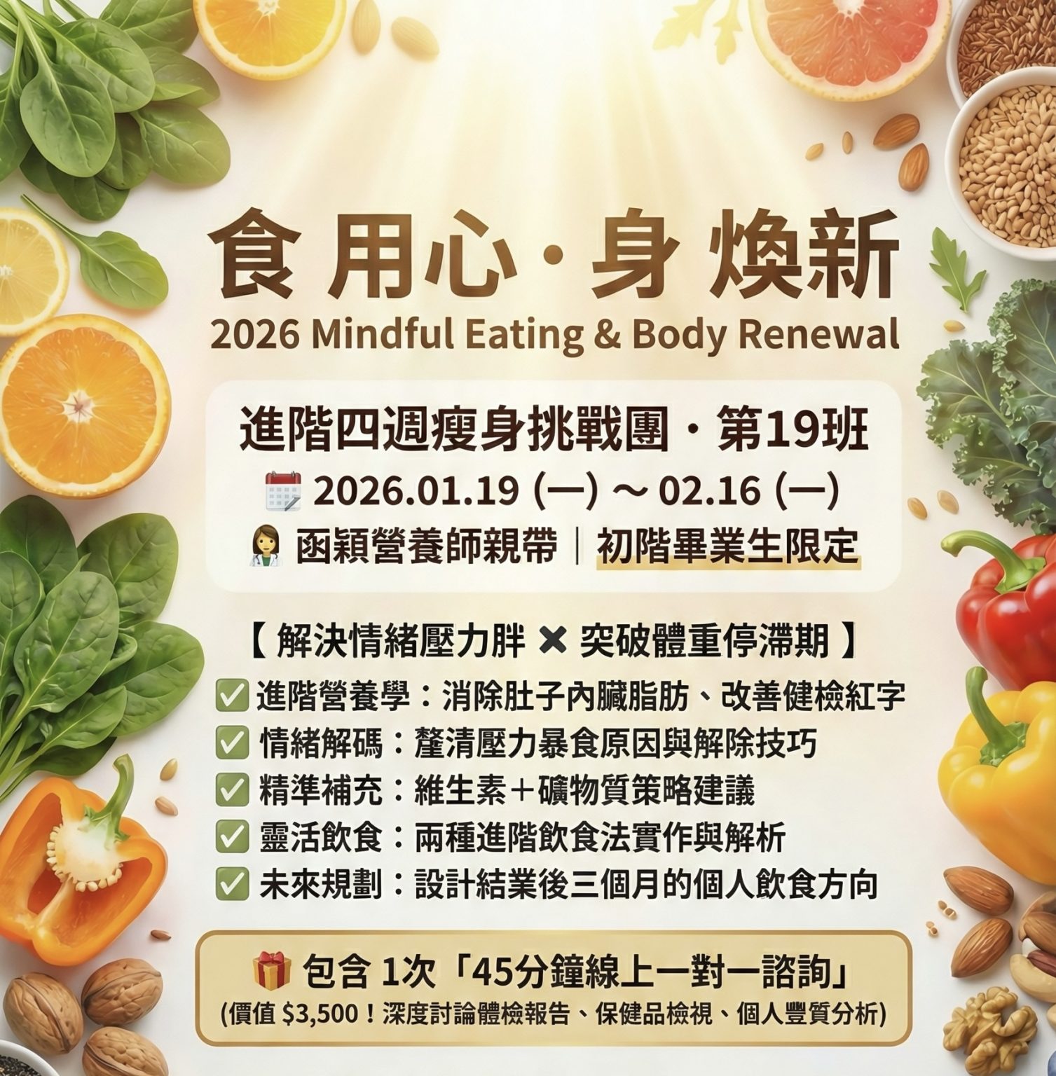 趙函穎營養師線上團體減重瘦身激勵團初階六週第30團2025.12.01~2026.01.12歲末年終吃不胖真好越吃越瘦團